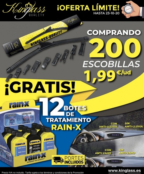¡PROMOCIÓN FLASH KINGLASS! Llévate un generador de Ozono de regalo Por la compra de 200 escobillas